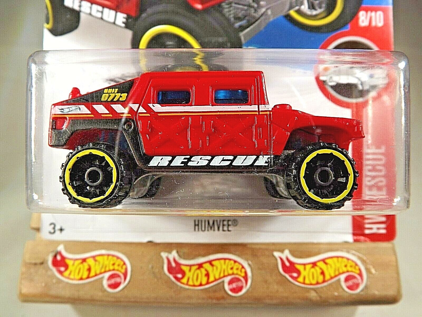 W/Black OROH6 Spoke Yellow Rim Wheels. HUMVEE Red Variation. 2016 Hot Wheels #218 HW Rescue 8/10. Card in near mint condition.