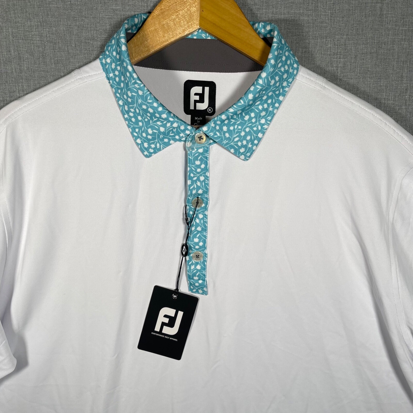 Footjoy Shirt Men XL White Performance Polo Stretch Floral Iisle Print Golf