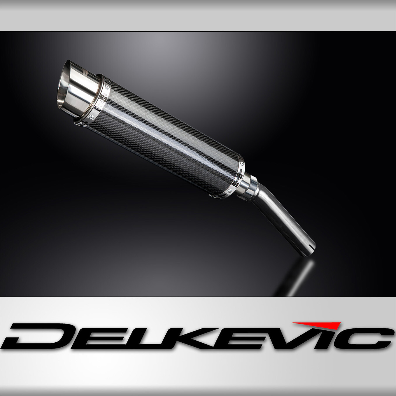 DELKEVIC MUFFLER KIT. Delkevic DL10 14" round carbon fiber mufflers have a composite carbon fiber sleeve with a mirror finish stainless steel end cap. All Delkevic mufflers include a removable baffle / DB killer giving more free flow of the exhaust gases (more BHP) and a deeper sound when removed.