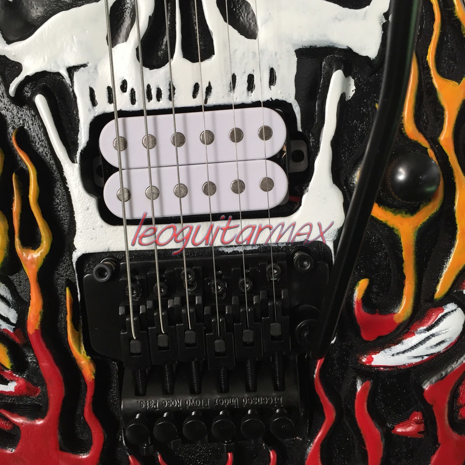 George Lynch Carved Flame Skull and Bones Electric Guitar Solid Black Hardware