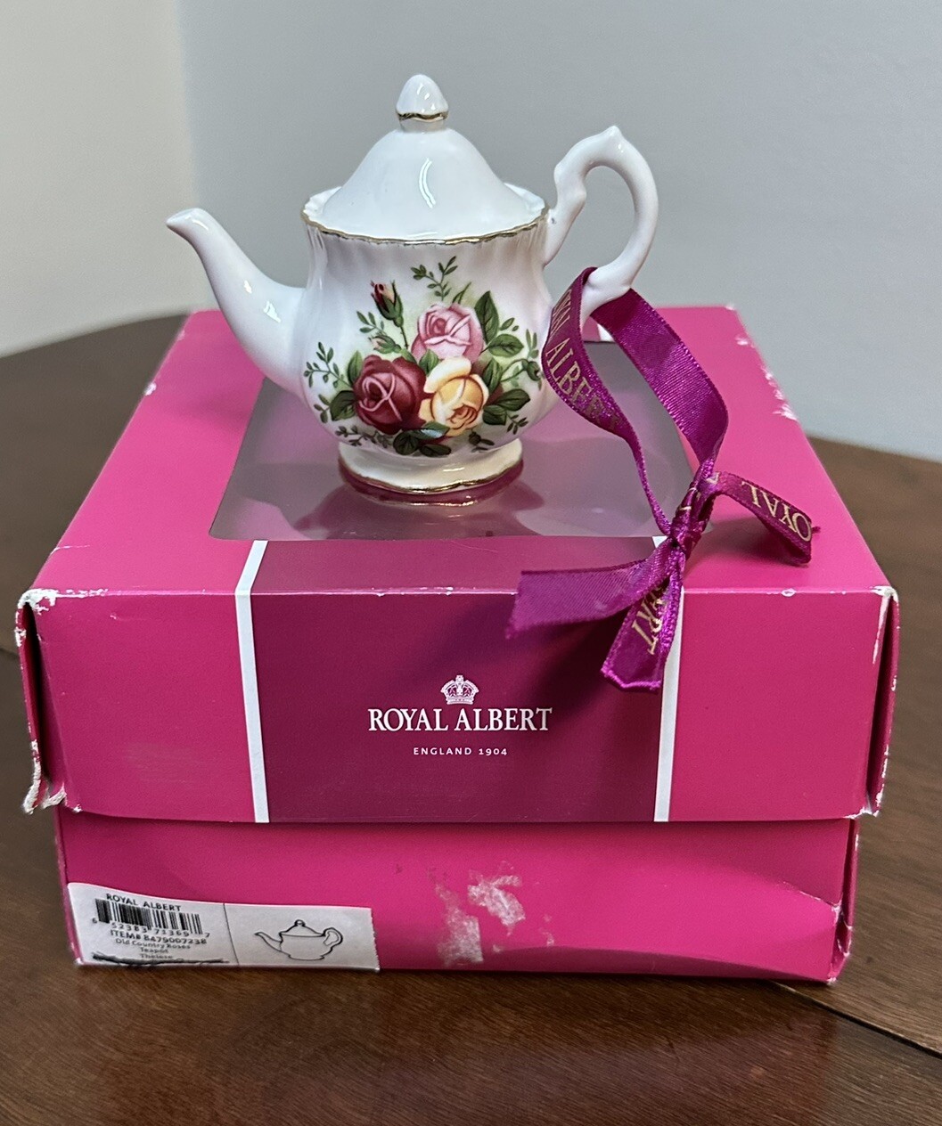 Royal Albert Old Country Roses Miniature Ceramic Teapot Christmas Ornament NEW