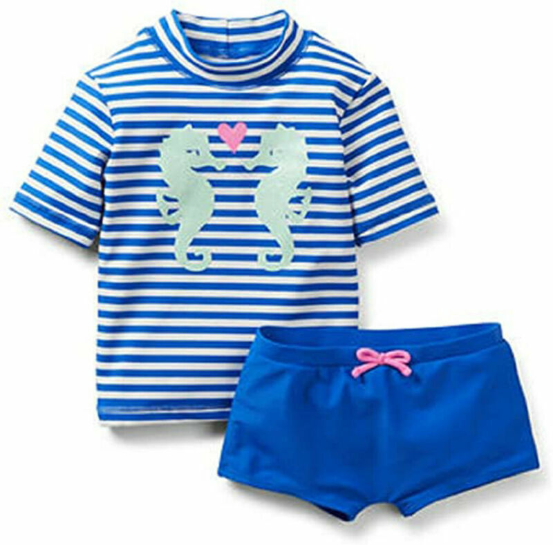 Carter's Infant Girls Blue Striped 2pc Rashguard Swim Set Size 12M