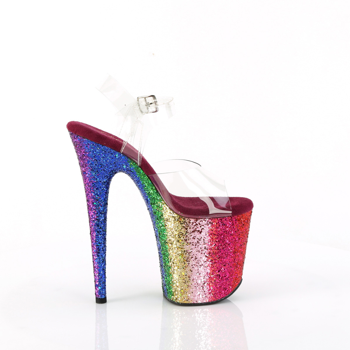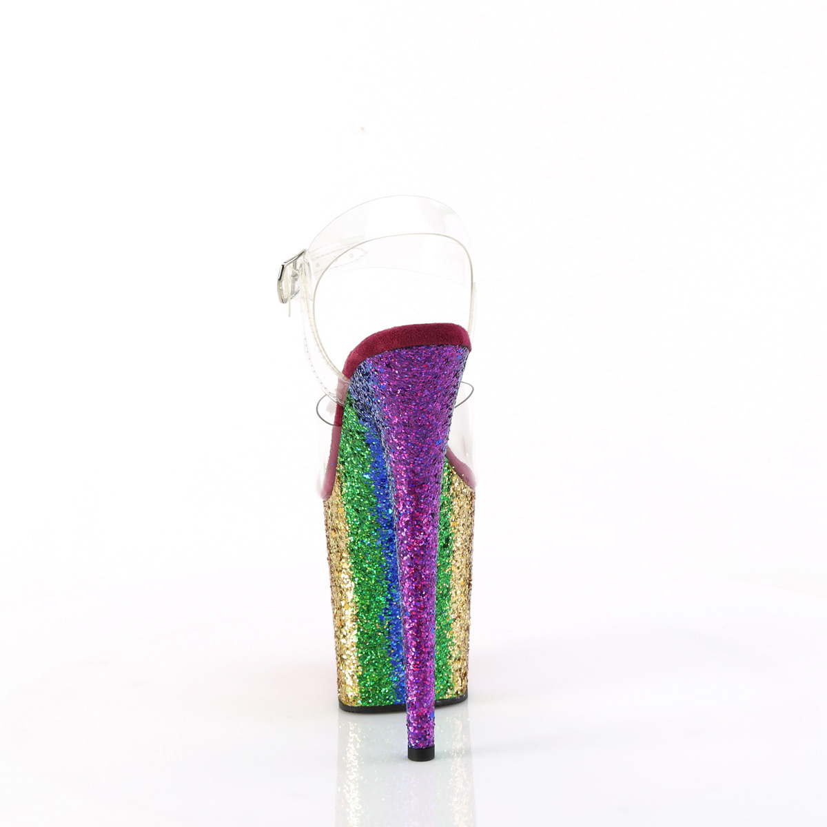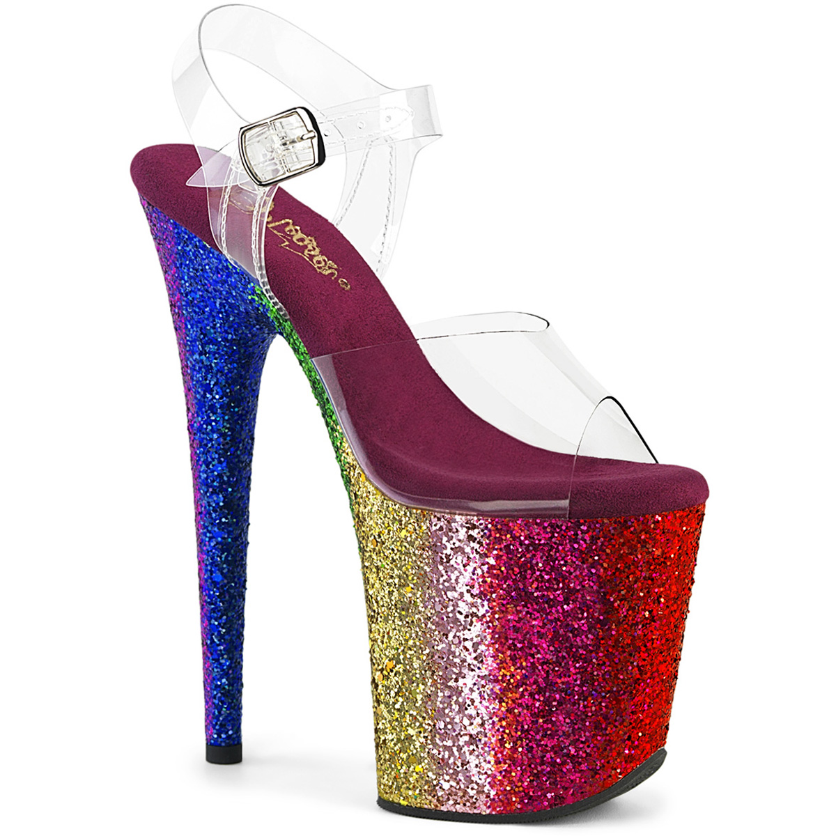 Pleaser 8" Heel Ankle Strap Sandals Gliiter Bottom Women Shoes Flamingo/808Rbg