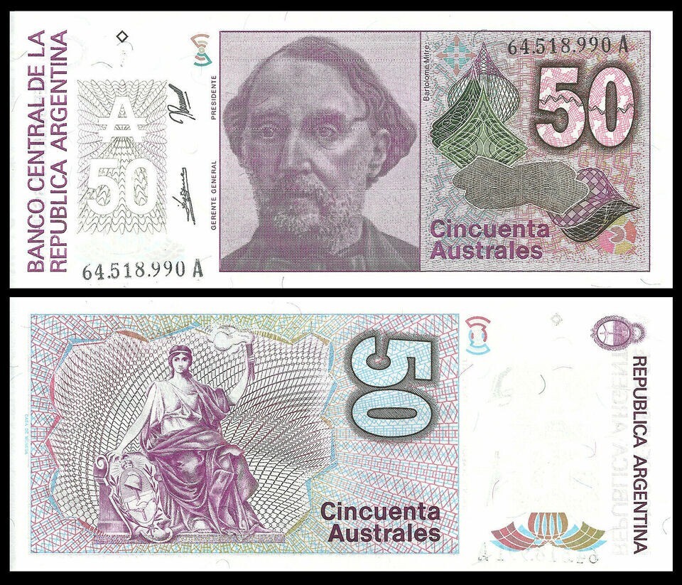 ARGENTINA SET 7 PCS 1 5 10 50 100 500 1000 AUSTRALES ND P 323 to 329 UNC