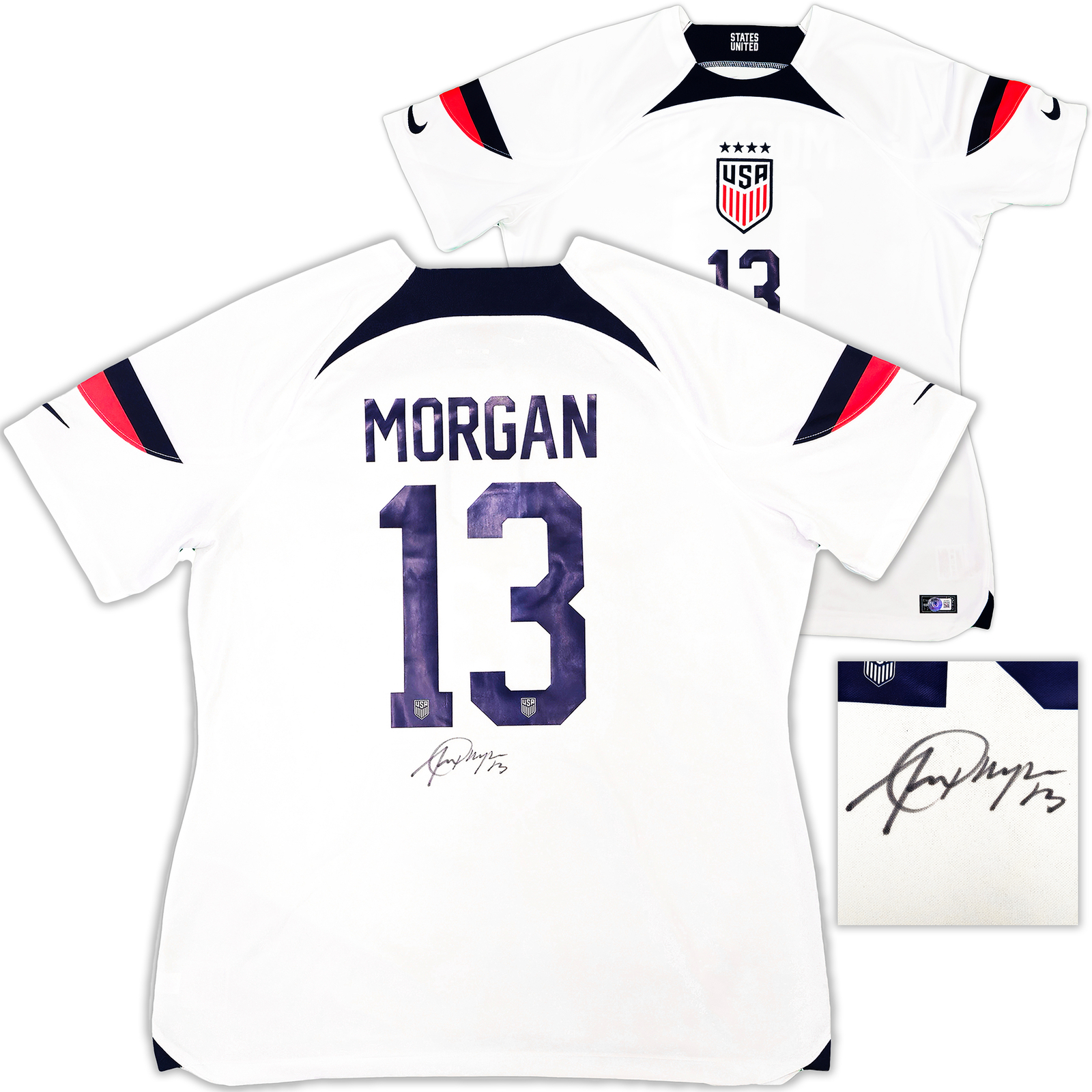 This is a White Nike Team USA Jersey that has been hand signed by Alex Morgan. This jersey is Womens Size XL. This item has been witnessed and certified authentic by Beckett Authentication (BAS) and comes with their tamper-proof witness sticker.