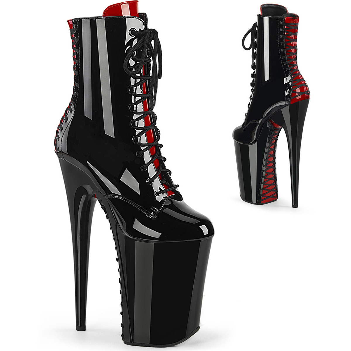 Pleaser 9" Platform Lace-Up, Side Zip Ankle Boot Pole Dancing Heels Inf1020Fh