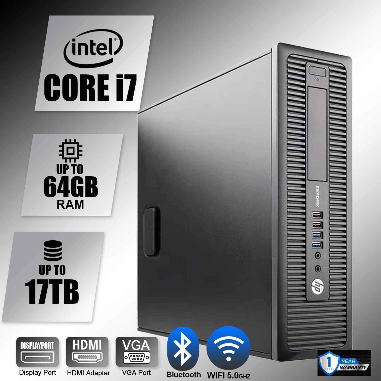 HP Desktop Computer PC i7, up to 64GB RAM, 8TB SSD, Windows 11/10, WiFi BT