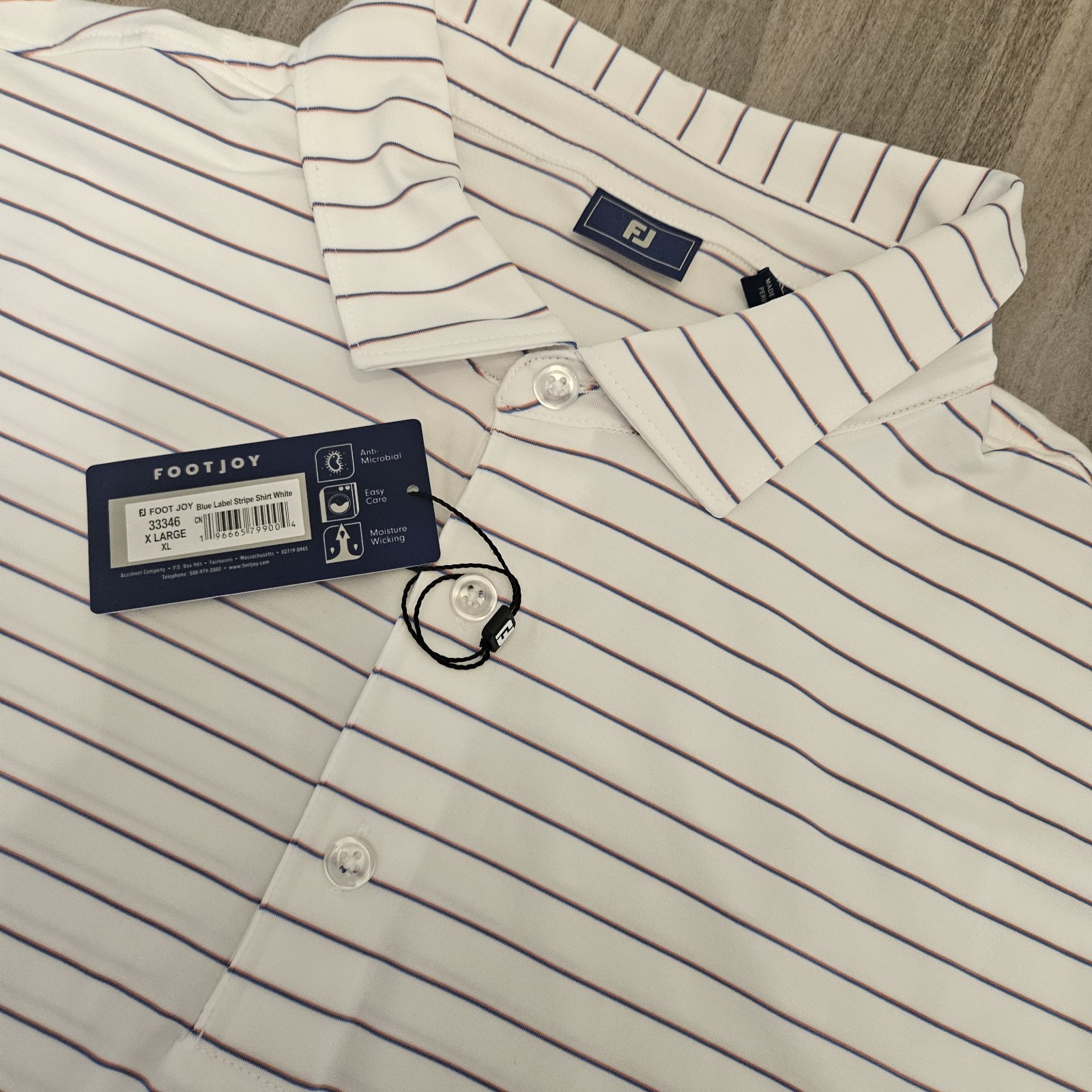 NWT Footjoy FJ Men XL White Striped Golf Performance Polo Shirt Stretch
