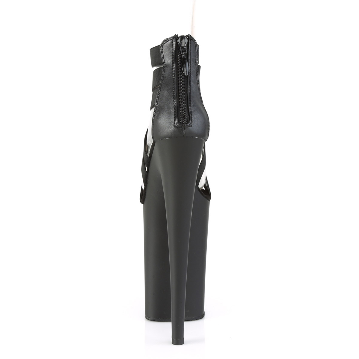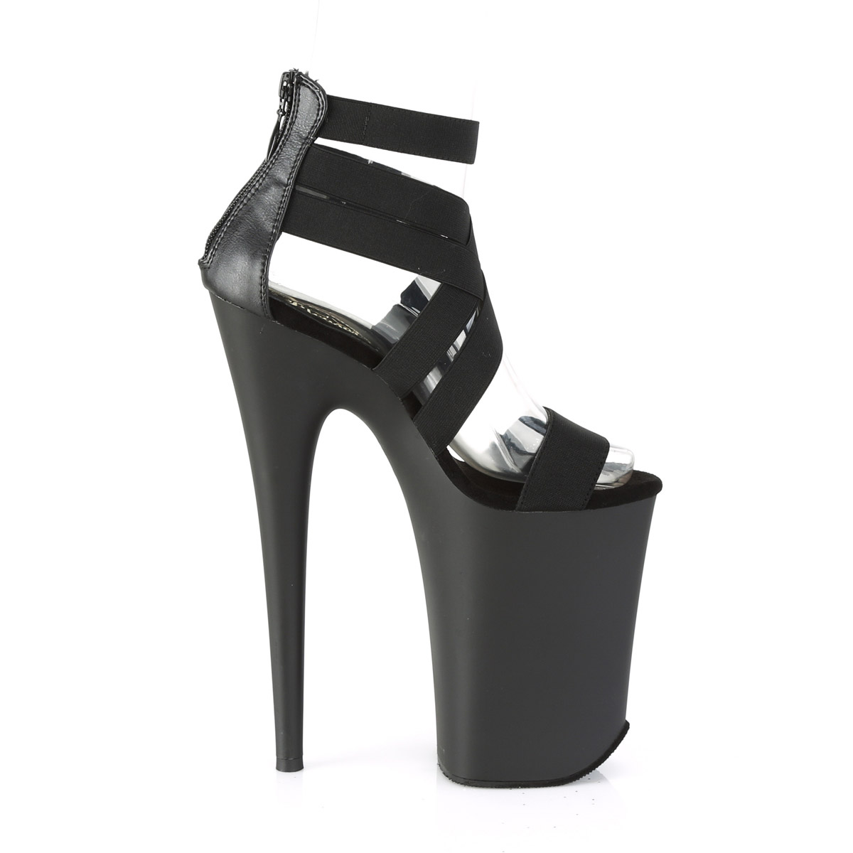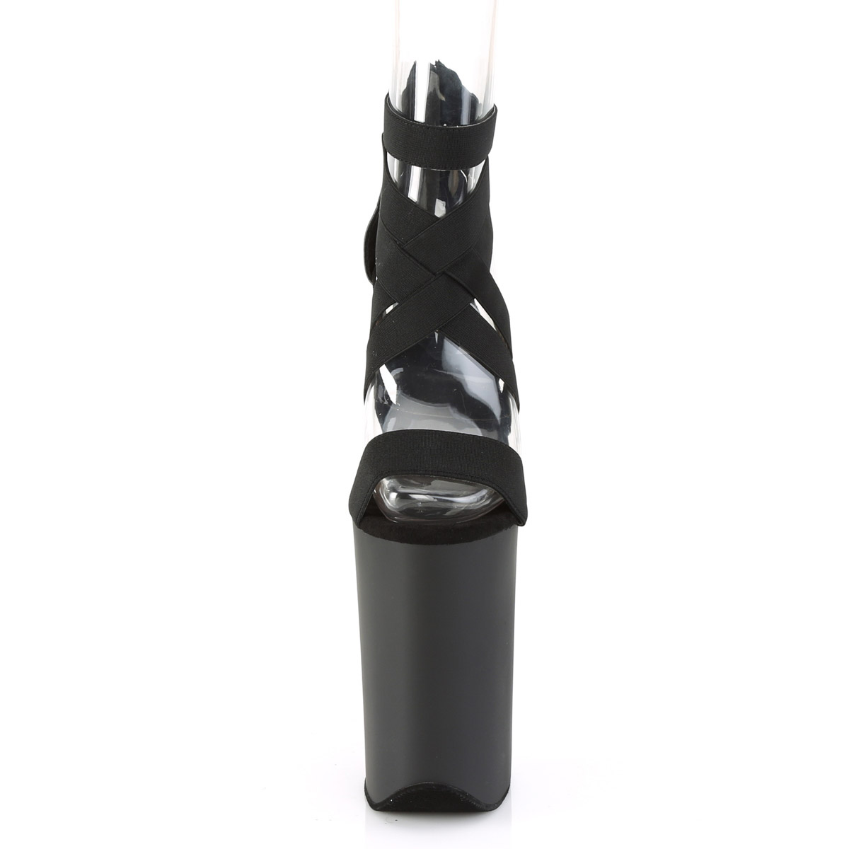 9" (230mm) Heel, 5 1/4" (135mm) Platform Criss Cross Closed Back Sandal, Back Zip Closure.