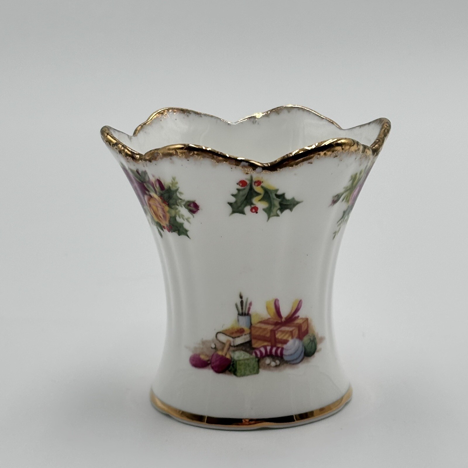 1990 Royal Albert Christmas Magic Bone China Votive Candle Holder Gold Trim Box