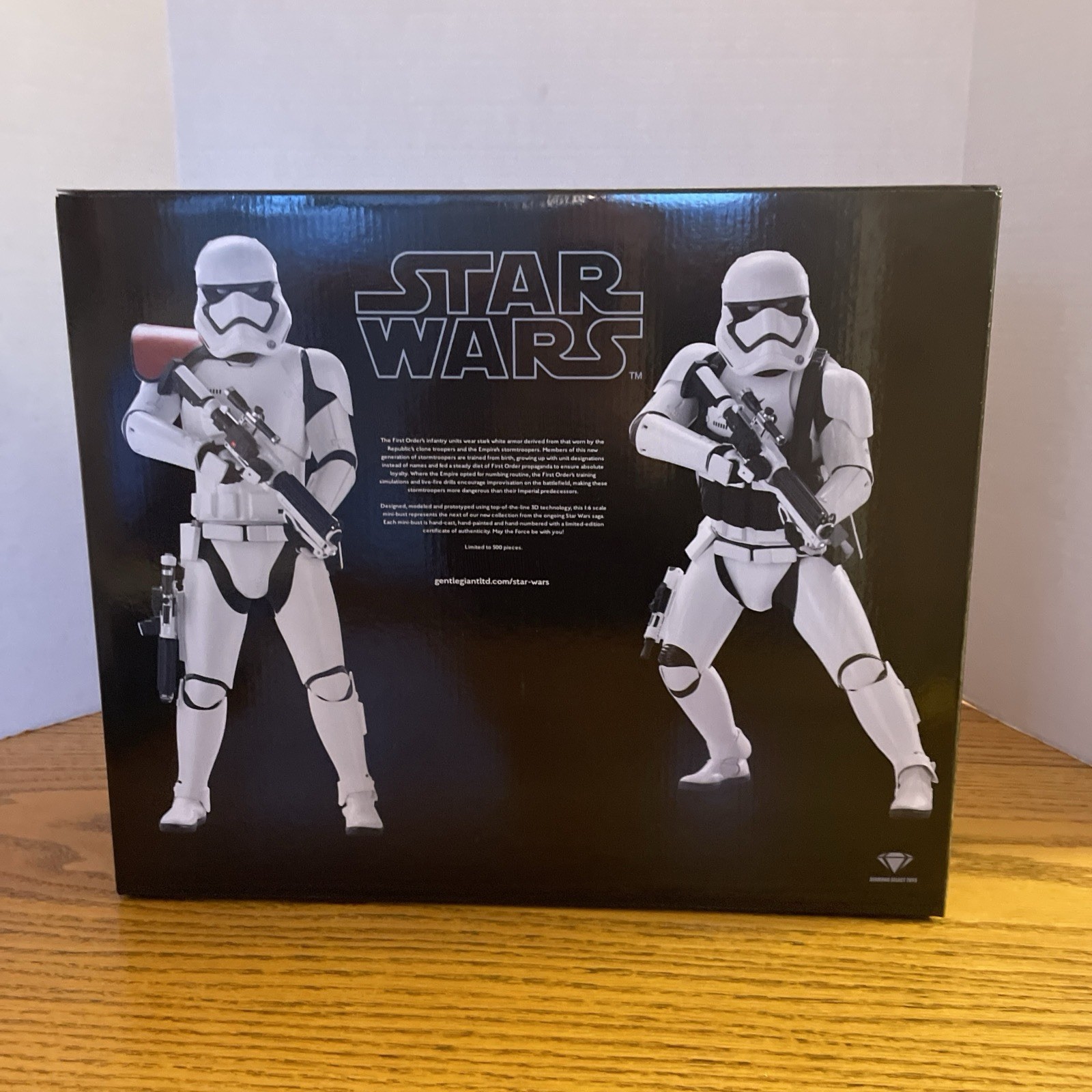The Gentle Giant Star Wars First Order Imperial Stormtrooper Deluxe Mini Bust is a highly detailed and collectible statue of a Stormtrooper from the Star Wars franchise. With its gentle design and high-quality craftsmanship, this mini bust captures the essence of the iconic stormtrooper character from the Star Wars universe. Original shipping box included. New - never out of box See pictures for cut in box 1-1025-080-00