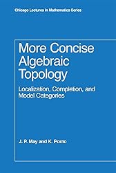 - With firm foundations dating only from the 1950s, algebraic topology is a relatively young area of mathematics. There are very few textbooks that treat fundamental topics beyond a first course, and many topics now essential to the field are not treated in any textbook. J. Peter May’s A Concise Course in Algebraic Topology addresses the standard first course material, such as fundamental groups, covering spaces, the basics of homotopy theory, and homology and cohomology. In this sequel, May and his coauthor, Kathleen Ponto, cover topics that are essential for algebraic topologists and others interested in algebraic topology, but that are not treated in standard texts. They focus on the localization and completion of topological spaces, model categories, and Hopf algebras. The first half of the book sets out the basic theory of localization and completion of nilpotent spaces, using the most elementary treatment the authors know of. It makes no use of simplicial techniques or model categories, and it provides full details of other necessary preliminaries. With these topics as motivation, most of the second half of the book sets out the theory of model categories, which is the central organizing framework for homotopical algebra in general. Examples from topology and homological algebra are treated in parallel. A short last part develops the basic theory of bialgebras and Hopf algebras.