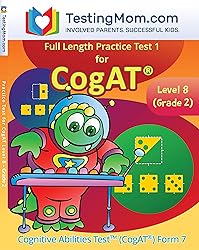 - TESTING MOM - An accredited company that offers the highest quality education FULL-LENGTH PRACTICE TEST - This CogAT workbook covers all 9 Verbal, Nonverbal and Quantitative subtests on the 2nd Grade CogAT Form 7 and 8. With 154 sample questions in all, this will be the only CogAT Practice Test that your child needs! SIMULATES THE TEST - Use this sample test to give your child a similar experience to the actual Cognitive Ability Test – you’ll be able to identify your child’s strengths and weaknesses and can work on skills needed before the actual gifted and talented test. INTERACTIVE LEARNING - Testing Mom specializes in making learning child’s play with fun games IMPROVEMENT TIPS THAT WORK - Testing Mom has helped thousands of kids prepare for the CogAT. We know the test-taking techniques that work and how to avoid the most common gifted testing mistakes – it’s all spelled out in this workbook! KID-FRIENDLY AND FUN - Colorful artwork will keep your child engaged and interested! -Get even more practice with interactive questions at the Testing Mom website