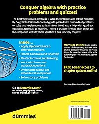 - The grade-saving Algebra I companion, with hundreds of additional practice problems onlineAlgebra I Workbook For Dummies is your solution to the Algebra brain-block. With hundreds of practice and example problems mapped to the typical high school Algebra class, you'll crack the code in no time! Each problem includes a full explanation so you can see where you went wrong―or right―every step of the way. From fractions to FOIL and everything in between, this guide will help you grasp the fundamental concepts you'll use in every other math class you'll ever take. This new third edition includes access to an online test bank, where you'll find bonus chapter quizzes to help you test your understanding and pinpoint areas in need of review. Whether you're preparing for an exam or seeking a start-to-finish study aid, this workbook is your ticket to acing algebra. Master basic operations and properties to solve any problemSimplify expressions with confidenceConquer factoring and wrestle equations into submissionReinforce learning with online chapter quizzesAlgebra I is a fundamentally important class. What you learn here will follow you throughout Algebra II, Trigonometry, Calculus, and beyond, including Chemistry, Physics, Biology, and more. Practice really does make perfect―and this guide provides plenty of it. Study, practice, and score high!