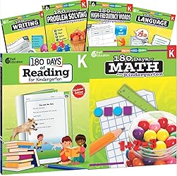 - 180 Days™: Kindergarten Practice 6-Book Set provides 180 days of daily practice activities to build students' reading, writing, mathematics, language, grammar, problem solving, and high-frequency word skills. Teachers and parents can help students gain regular practice with these quick, diagnostic-based activities that are easy to prepare and implement as part of a classroom routine, as intervention, or as homework. Aligned with state and national standards, these comprehensive workbooks will prepare students for college and career. This 6-Book Set includes: 180 Days™: Math for Kindergarten, 180 Days™: Reading for Kindergarten, 180 Days™: Language for Kindergarten, 180 Days™: Writing for Kindergarten, 180 Days™: Problem Solving for Kindergarten, 180 Days™: High-Frequency Words for Kindergarten,