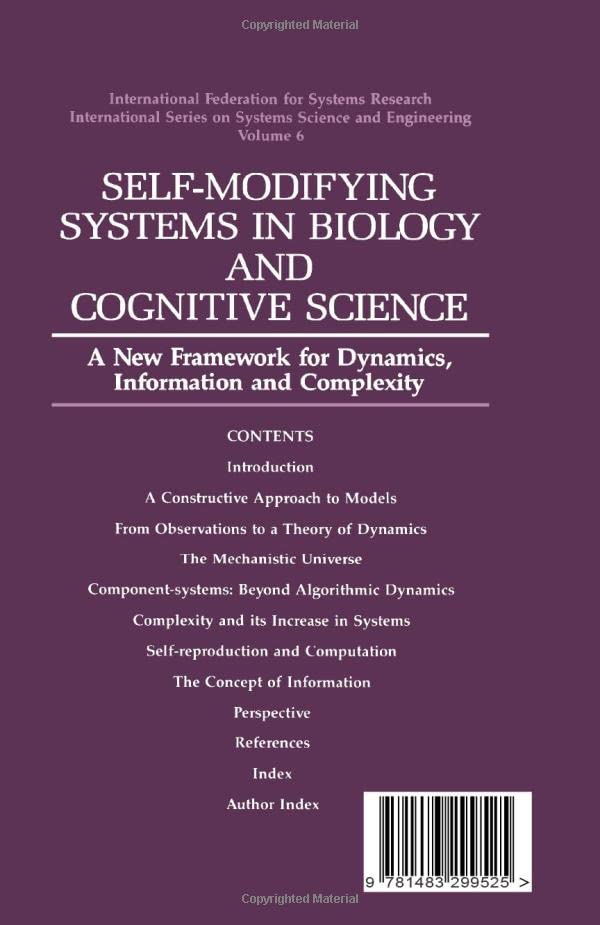 Self-Modifying Systems in Biology and Cognitive Science, Volume 6: A New Framework for Dynamics, Information and Complexity (IFSR International Series on Systems Science and Engineering)