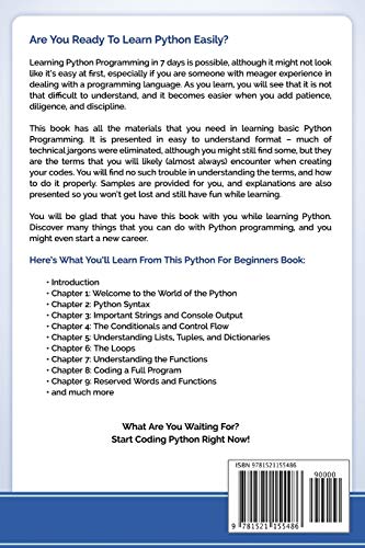 Python: Programming: Your Step By Step Guide To Easily Learn Python in 7 Days (Python for Beginners, Python Programming for Beginners, Learn Python, Python Language) (Programming Languages)