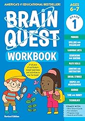 - From hundreds of curriculum-based activities, exercises, and games in every subject to a new technology section, progress map, and stickers, discover the ultimate first grade workbook from America's #1 educational bestseller. Loved by kids, teacher approved, and trusted by parents, Brain Quest Grade 1 Workbook reviews and reinforces what children are learning in the classroom in an instantly engaging, entertaining way. Each page is jam packed with fun activities, practice exercises, and games covering ABCs, phonics, spelling and vocabulary, time and money, maps, science, and much more. What’s New?Technology section Introduces children to computer science, coding, and logic Updated content Activities and illustrations are revised to reflect the diversity of children, their families, and experiences Support for parents and children Section openers preview upcoming content and provide directions and suggestions to help make learning stick A fun progress sticker mapwith stickers Helps children celebrate their accomplishments as they complete each section of the workbook Comes with A completion certificate Mini Smart Card question-and-answer deck Aligned with national and state standards and reviewed by award-winning teachers, this workbook appeals to children’s natural curiosity, with interactive layouts and easy-to-follow explanations that take the intimidation out of learning. Plus, it’s written to help support parents with explanations of key concepts for homework help!