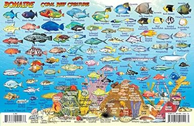 • Side One is a mini-map of Bonaire, with nearly 90 dive and snorkel sites named and located. Side Two is a fish identification guide with more than 100 species of colorful reef creatures beautifully illustrated. This convenient, waterproof reference is laminated with hole for lanyard. 5.5" x 8.5".