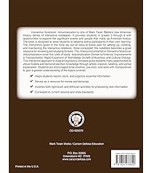- Notebook Features: • 64 pages, about 8 inches x 11 inches • Ages 10-14, grades 5-8 • Covers American industrialization, improvements to infrastructure, and technology expansions • Helps students record, store, and organize information for review/test prep • Correlated to state standardsHands-On Learning: The Industrialization Interactive Notebook helps 5th-8th graders create their own American history resource. Students strengthen their US history knowledge and creative and organizational skills through interactive learning.What’s Included: The 64-page American history book features multiple lessons and units of study focusing on the industrialization of America through interactive content. Students record, store, and organize information that is useful for test prep.Correlated To State Standards: This standards-based notebook teaches US history through topics and lessons such as the causes of industrialization, technological expansion, and new changes to labor practices.Benefits Of Interactive Notebooks: Students are encouraged to be creative, use color, and work with interactive content to gain a greater understanding of the topics covered, and become active participants in their own learning journey.Why Mark Twain Media: Designed by leading educators, Mark Twain Media Publishing Company specializes in providing captivating, supplemental books and resources in a wide range of subjects for middle- and upper-grade classroom success.