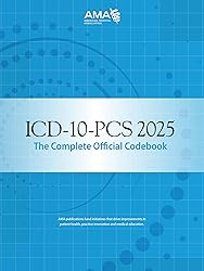- ICD-10-PCS 2025: The Complete Official Codebook contains the complete ICD-10-PCS official guidelines, code set and supplementary appendixes required for reporting inpatient procedures. This illustrated codebook presents the code set in 17 sections of tables arranged by general procedure type. Tables within the extensive Medical and Surgical section are additionally sectioned out by body system, indicated by color-coded page borders. ICD-10-PCS contains classifications for procedures, devices, and technologies. FEATURES AND BENEFITSSummary of changes — Quickly see how additions and deletions affect each section of ICD-10-PCS. Complete ICD-10-PCS 2025 code set — The code set is organized in 17 sections. Each section contains a code table by which a code can be built through character selections that reflect the procedure performed. A character meanings table and citations to American Hospital Association’s Coding Clinic® start each section. Official coding and reporting guidelines — Learn how to use the code set appropriately following the guidelines specific for each section. Illustrations — The color illustrations provide a visual explanation of anatomy and procedural approach. Approach illustrations show the access location, method, and instrumentation that determine the approach. Body parts with indicators to applicable code characters (provided immediately after the Character Meaning tables in the Medical/Surgical sections). Visual alerts —This edition provides color-coding and symbols that identify male/female procedures and new/revised character values. Detailed information on structure and conventions of ICD-10-PCS — Learn about the unique structure and the specific definitions and functions of each character. Practice your skills with sample exercises (answers included). Color-coding and symbols for the Medicare Code Edits — This edition includes color-coding and symbols for the most comprehensive coverage of ICD10 MS-DRG MCEs for procedures including: Non-covered procedures. Limited-coverage procedures. Combination-only procedures. Non-operating room procedures affecting MS-DRG assignment. Non-operating room procedures not affecting MS-DRG assignment. Hospital-acquired condition (HAC)-related procedures. Procedure combination tables — Identify ICD-10-PCS code-combination requirements needed to satisfy certain MS-DRG requirements. Valuable resources to enhance productivity — Resources to help guide the user, including: Root operation definition table for medical/surgical section. Root operation for medical/surgical section, grouped by objective. Operation/Type definition tables for other ICD-10-PCS sections. Body-part definitions and body-part key for accurate identification of correct body-part character. Device key and device aggregation tables. Approach definitions. Substance key.