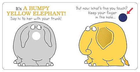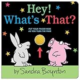 - From the brilliant mind of bestselling and beloved Sandra Boynton, comes a wild touch-and-feel book with a guessing game twist! Hey! What’s That? invites readers to guess what comes next by touching a mysterious tactile element through a hole on each page. Once the page is turned, readers can keep their wiggly finger in place to join in the animal fun! Become a swinging elephant trunk, a swishy lion tail, or a waggly rabbit ear! The adventure is all in your hands! Hey! What’s That? A Bumpy Yellow Elephant! Say hi to her with your trunk. (wiggle finger)