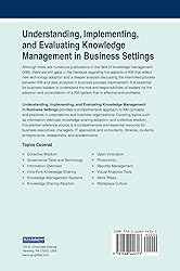 - Although there are numerous publications in the field of knowledge management (KM), there are still gaps in the literature regarding the aspects of KM that reflect new technology adoption and a deeper analysis discussing the interlinked process between KM and data analytics in business process improvement. It is essential for business leaders to understand the role and responsibilities of leaders for the adoption and consolidation of a KM system that is effective and profitable. Understanding, Implementing, and Evaluating Knowledge Management in Business Settings provides a comprehensive approach to KM concepts and practices in corporations and business organizations. Covering topics such as information overload, knowledge sharing adoption, and collective wisdom, this premier reference source is a comprehensive and essential resource for business executives, managers, IT specialists and consultants, libraries, students, entrepreneurs, researchers, and academicians.