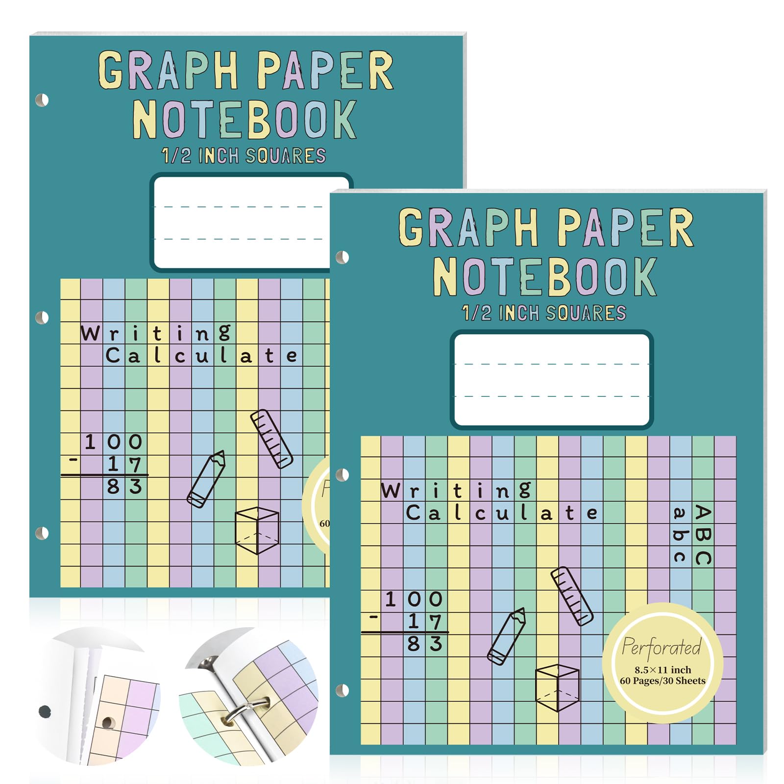 - Graph paper notebook 5x5" grid, 120 pages, large 8.5" x 11" book size. 1/5" grid ruled double sided Line thickness: 0.7 point Durable paperback matte finish cover non perforated and spiral free Simply designed for everyday use. Ideal for drawing, notes, journal writing and more. Buy a copy now.
