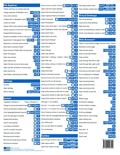 Windows 11 and 10 Keyboard Shortcuts Quick Reference Training Tutorial Guide Cheat Sheet- Laminated