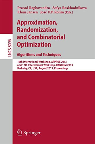 Approximation, Randomization, and Combinatorial Optimization. Algorithms and Techniques: 16th International Workshop, APPROX 2013, and 17th ... Computer Science and General Issues)