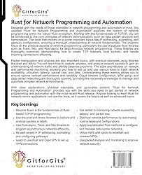 - Designed with the needs of those interested in network programming and automation in mind, this updated "Rust for Network Programming and Automation" explores the realism of network programming within the robust Rust ecosystem. Building on top of Rust 1.68, this book takes you step-by-step through the essentials of network protocols, packet analysis, and network administration with up-to-date and thorough material.Starting with the fundamentals of TCP/IP, you will be introduced to the core principles of network communication, such as data packet structure and transmission. The book then moves on to cover important topics like IP addressing, subnetting, and gateway configuration, ensuring a thorough understanding of network fundamentals. The chapters focus on the practical aspects of network programming, particularly the use of popular Rust libraries such as Tokio, Mio, and Rust-async for asynchronous network programming. These libraries are thoroughly examined, demonstrating how to create TCP listeners, bind sockets, and handle incoming connections efficiently.Packet manipulation and analysis are also important topics, with practical examples using libraries like pnet and libtins. You will learn how to capture, process, and analyze network packets to gain an understanding of network traffic and identify potential problems. The book also focuses on network and performance monitoring, showing you how to set up and use various tools to track network availability, utilization, latency, packet loss, and jitter. Understanding these metrics allows you to ensure optimal network performance and reliability. Cloud network configuration, VPN setup, and data center networking are thoroughly covered, providing the necessary knowledge to manage and automate complex network environments.Each chapter is intended to build on the previous one, resulting in a coherent and comprehensive learning experience. With clear explanations, practical examples, and up-to-date content, "Rust for Network Programming and Automation" provides you with the skills you need to get started in network programming and automation with the most recent Rust release. Anyone looking to learn Rust for network-centric applications can use this book, as it covers the basics as well as advanced topics.Key LearningsBecome fluent in the fundamentals of Rust-based TCP/IP programming.Use the pnet and libtins libraries to capture and analyze packets in depth.Use the Rust-async, Tokio, and Mio libraries to program asynchronous networks efficiently.Be well-versed in IP addressing, subnetting, and configuring gateways to assure a secure network installation.Learn to use Rust and OpenVPN to set up VPN connections.Get skilled in monitoring network availability, latency, and packet loss.Optimize network performance and uptime by automating routine tasks and configurations.Apply sophisticated Rust methods to the configuration and management of data center networks.Utilize AWS and rusoto to establish and oversee VPCs.Use packet analysis and monitoring to improve network security by identifying threats.Table of ContentBasics of Network AutomationEssentials of Linux for NetworksRust Basics for NetworksCore Rust for NetworksRust Commands for NetworksProgramming & Designing NetworksEstablishing & Managing Network ProtocolsPacket & Network AnalysisNetwork Performance Monitoring