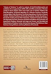 - This book consisting of eleven chapters. It covered variation problems with fixed boundaries, functionals depending on n unknown functions, functionals involving higher order derivatives, functionals depending on function of several variables, variational problems with movable boundaries, movable boundaries of functionals involving second order derivatives, variational functionals involving two dependent functions, extremum of variational problems with constraints and isoperimetric problems, Extremals with cusps and corners, one sided and mixed variational problems. Further in this book we also discussed weak minimum, weak maximum, strong minimum and strong maximum of functionals.