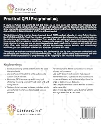 - If you're a Python pro looking to get the most out of your code with GPUs, then Practical GPU Programming is the right book for you. This book will walk you through the basics of GPU architectures, show you hands-on parallel programming techniques, and give you the know-how to confidently speed up real workloads in data processing, analytics, and engineering.The first thing you'll do is set up the environment, install CUDA, and get a handle on using Python libraries like PyCUDA and CuPy. You'll then dive into memory management, kernel execution, and parallel patterns like reductions and histogram computations. Then, we'll dive into sorting and search techniques, but with a focus on how GPU acceleration transforms business data processing. We'll also put a strong emphasis on linear algebra to show you how to supercharge classic vector and matrix operations with cuBLAS and CuPy. Plus, with batched computations, efficient broadcasting, custom kernels, and mixed-library workflows, you can tackle both standard and advanced problems with ease.Throughout, we evaluate numerical accuracy and performance side by side, so you can understand both the strengths and limitations of GPU-based solutions. The book covers nearly every essential skill and modern toolkit for practical GPU programming, but it's not going to turn you into a master overnight. Key LearningsBoost processing speed and efficiency for data-intensive tasks.Use CuPy and PyCUDA to write and execute custom CUDA kernels.Maximize GPU occupancy and throughput efficiency by using optimal thread block and grid configuration.Reduce global memory bottlenecks in kernels by using shared memory and coalesced access patterns.Perform dynamic kernel compilation to ensure tailored performance.Use CuPy to carry out custom, high-speed elementwise GPU operations and expressions.Implement bitonic and radix sort algorithms for large or batch integer datasets.Execute parallel linear search kernels to detect patterns rapidly.Scale matrix operations using Batched GEMM and high-level cuBLAS routines. Table of ContentIntroduction to GPU FundamentalsSetting up GPU Programming EnvironmentBasic Data Transfers and Memory TypesSimple Parallel PatternsIntroduction to Kernel OptimizationWorking with PyCUDA and CuPy FeaturesPractical Sorting and SearchLinear Algebra Essentials on GPU
