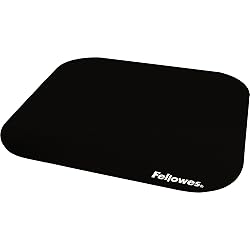 - The Fellowes 58024 Medium Mouse Pad gives your mouse the texture it needs for fine control. Elegantly designed in jet black in color, and measuring 8-inches by 9.5-inches, this pad offers a stylish way to enhance your computer area.