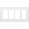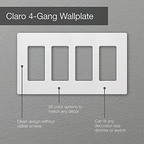 Lutron Claro Light Switch Cover Plate, 4 Gang Wallplate, for Decorator Light Switches, Rocker Light Switch Cover, Outlet Cover, Screwless Switch Plate Cover, Gloss, CW-4-WH, White