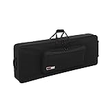 Gator cases lightweight rolling keyboard case for 76 note keyboards and electric pianos (GK-76) Rugged nylon construction with polyethylene reinforced interior Frame designed to fit most 76-Note keyboards Soft foam lined interior with fully adjustable padded straps to secure keyboard in place during transport Large accessory compartments on outside for pedals and cables Built-in wheels with tow handle & skid bars. Interior dimensions: 51. 5" X 18" X 6. 25"