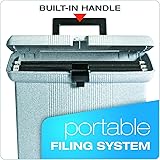 A complete, ready-to-use portable filing system^Includes 3 black Pendaflex Reinforced Hanging Folders with 3 clear plastic tabs and extra paper inserts^Holds up to 12 letter-sized hanging folders^Granite, durable plastic with built-in handle and secure latch closure^11" H x 14" W x 6-1/2" D Size