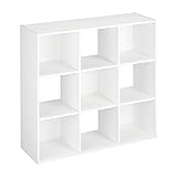 ClosetMaid 9 Cube Laminated Wood Reversible Stackable Open Bookcase Display Shelf Storage Organizer for Home and Office Organization, White