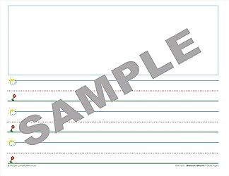 Bold graphics in blue, green, and red promote the feeling of success as children simply "Start at the Sky and pull down to the Ground" to form letters correctly. K-1 Story Paper has space for a picture, and the lines have 1" spacing. Package includes 100 sheets Bold graphics in blue, green, and red promote the feeling of success as children simply "Start at the Sky and pull down to the Ground" to form letters correctly., K-1 Story Paper has space for a picture, and the lines have 1" spacing., Package includes 100 sheets.