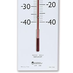 - Help make the connection between science and everyday life with this dramatic, over-sized thermometer the whole class can see! This 30" wall-mounted thermometer has a 23" tube recessed into the sturdy wooden base. Shows both Fahrenheit and Celsius, from -40° to 50°C and -40°F to 120°F. Supports a host of math and science activities. Great for science fairs!