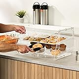 Front & Rear Doors – Food can be accessed and loaded through front and rear spring-hinged doors ideal for displaying donuts, pastries, breads and more 2 Trays – Includes two tray slots perfect for hotels, convenience stores and bakeries Easy Clean – Smooth acrylic surface wipes down with a damp cloth Measures 21” x 18”x 12”