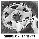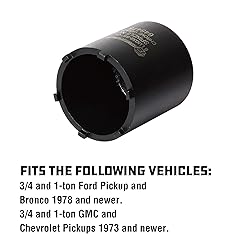 Made to be the most reliable tools in the market today Tool solutions for most all situations Built to exceed tool standards For easy removal of spindle nuts; Not for impact wrench use 6-lug, 2-5/8-inch outer diameter, 1/2-inch drive Fits the following vehicles: 3/4 and 1-ton Ford Pickup and Bronco 1978 and newer; 3/4 and 1-ton GMC and Chevrolet Pickups 1973 and newer Black chrome vanadium Lifetime Warranty