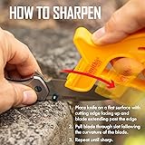 KNIFE SHARPENER – Smith’s 10-Sec Knife & Scissors Sharpener features a “V” shaped knife sharpening slot with two crossed carbide blades at a preset sharpening angle for guaranteed results every time & can be used on straight-edge blades. SCISSORS SHARPENER – The patented scissors sharpener is built into the handle and can be used on right and left-handed scissors. The specially designed “floating” round ceramic rod conforms to the exact angle of your scissors for proper sharpening. SHARP EDGE IN SECONDS – Bring new life to your knives, scissors, and more with this must-have Smith’s Sharpener. Smith’s outdoor sharpener will put a sharp edge on your pocket knife, hunting & fishing knives, and household scissors or shears in seconds. SAFETY FEATURES – This pullover knife sharpener features a full-length finger and thumb guard to keep you protected with each stroke. A sharp blade makes it easier to get a task completed quickly and safely. BUILT TO LAST - The carbide blades in the knife sharpener are reversible and replaceable for long-lasting use. The packaging includes step-by-step instructions for our easy-to-use sharpener to guide and provide best practices for safe sharpening.