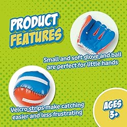 Easy Catch for Beginners: This toddler baseball glove with Velcro ball makes learning to catch fun and simple. The ball sticks to the glove, helping kids ages 3-5 build confidence and baseball skills while enjoying outdoor play Sized for Small Hands: Designed as a baseball glove for kids 3-5, this lightweight mitt fits comfortably and is easy to use. It’s the perfect T-Ball glove for beginners, giving toddlers the right size and design to start practicing catch Outdoor Play Ready: Durable and travel-friendly, this catch ball set is ideal for backyard games, trips to the park, or even beach play. Encourages kids to stay active with fun outdoor toys that inspire movement, teamwork, and screen-free fun Builds Coordination & Skills: More than a toy, this toddler T-Ball glove supports hand-eye coordination, motor development, and baseball fundamentals. A great way for preschoolers to practice catching while developing athletic confidence Gift Idea for Ages 3+: Makes an awesome 3 year old boy birthday gift or surprise for any child who loves active play. A colorful, engaging glove and ball set that doubles as a fun outdoor toy for toddlers ages 3-5 and a great family game Colorful, child size glove Includes Velcro ball for an easier game of catch Perfect for the beginner player Ages 3 and up