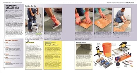 - Detailed photos and easy-to-follow presentations for tiling floors, walls, countertops, and showers guide novices and experts alike.A two-tiered design offers instruction for common tiling situations plus additional information for unusual circumstances.This comprehensive guide covers basic and advanced tile techniques to plan patterns, measure and cut tiles, seal finished surfaces, and repair broken tile.Pre-start checklists detail the tools, materials, skills, and time needed to complete each job, while Stanley Pro Tips offer shortcuts to work easier, faster, and safer.Includes installation instructions for all types of ceramic tile, plus vinyl, laminate, carpet, and parquet tile products.