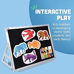 CP TOYS 3 'N 1 MAGNETIC WITE AND WIPE REVERSIBLE WHITEBOARD AND FELTBOARD: Reversible design with a dry-erase magnetic whiteboard on one side and a felt board on the other, ideal for storytelling and writing HANDS-ON LEARNING: Our magnetic learning board encourages interactive play, helping toddlers develop motor skills, creativity, and early literacy through drawing, writing, and engaging with felt stories VERSATILE DESIGN: Ideal for classrooms, play areas, or home use, hang this toddler magnet board on walls or use free-standing with the included stand and with or without removable trays DURABLE QUALITY: The reversible felt board is made with an aluminum frame and high-quality materials to withstand regular use, providing long-lasting enjoyment for children ages three and up PERFECT SIZE: At 18" x 24", the felt board for classroom is just the right size for young learners, offering ample space for their activities while being easy to store or transport.