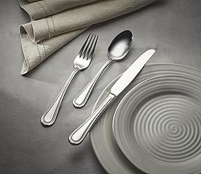 WHY IT’S SPECIAL: Oneida's Countess flatware brings the ornaments of nobility and the grandeur of old-world elegance to your table. With its richly decorated beaded edge, this flatware elevates your dining experience to the level of royal estates and luxurious countryside manors. Treat your table—and yourself—to the refined elegance of Countess. WHO IT’S FOR: Those seeking stainless steel silverware that adds tabletop sophistication and want to enjoy an opulent look every day. Whether you’re hosting a special occasion or simply enjoying everyday meals, this collection ensures your table is nothing short of majestic. WHAT'S IN THE BOX: Includes a 45-piece flatware set for 8 people, plus a 5-piece serving set. Each of the 8 flatware place settings includes a dinner fork, salad fork, dinner knife, dinner spoon, and teaspoon. Serving set includes a serving spoon, pierced serving spoon, sugar spoon, butter knife, and serving fork. WHAT IT’S MADE OUT OF: The Oneida Countess 45-piece flatware set is made of high-quality 18/0 stainless steel for everyday durability and rust-resistance. HOW TO CARE FOR IT: This Oneida flatware is dishwasher safe for added convenience and easy clean up.