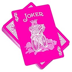 - Introducing the vividly colored and flawlessly designed Bicycle pink deck! This pink faced poker deck soars across your spectator's eyes with full color court cards sporting black and white pips! They are perfect for magicians, card collectors and everyone in between. Printed in brilliant color on high quality Bicycle stock, the deck also includes extra gaff cards for performing card tricks. Playing cards and magic tricks by Magic Makers.