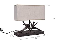 - Add some style and personality to the space with this resin bird on branch table lamp that showcases an intricately carved resin bird on a branch base, topped with a rectangular flax shade. This table lamp is a charming and rustic addition to the home décor, as it features a realistic and detailed bird on a branch that stands out in any setting. The resin base has a black finish that creates a vintage look, while the flax shade creates a cozy and inviting light. This table lamp is suitable for any room that needs some extra charm and warmth, such as the living room, bedroom, office, or any other area. It can also be a great gift for anyone who loves birds or nature. This table lamp requires one 40-watt bulb (not included) and has a convenient in-line switch for easy on and off. It measures 12.25 inches Length x 5.5 inches Width x 12 inches Height, and the cord length is 6.5 feet. Add this resin bird on a branch table lamp to the home and enjoy its beauty and functionality.