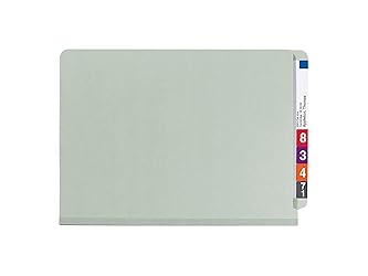 - Smead’s 100% Recycled Pressboard End Tab Classification Folders keep your documents orderly and easy to access. These gray/green folders are designed for shelf use, ideal for project files, real estate transactions, loans, legal files, or large amounts of paperwork that need to stay in order for frequent reference. Includes 10 legal-size (15-1/4” W x 9-1/2” H) pressboard fastener folders with straight-cut end tabs. Sturdy 25 point pressboard stock keeps papers intact while fasteners keep documents in order. Gusset allows for folder expansion up to 2”. Six filing surfaces help you store your information under several subdivisions. End tabs work well with Smead Smartstrip Labeling System Refill Pack End Tab Labels for Ink-Jet Printer (66006) and Smead Smartstrip Labeling System Refill Pack End Tab Labels for Laser Printer (66004). Contains 100% recycled content, 30% post-consumer material and is SFI Sourcing Certified.